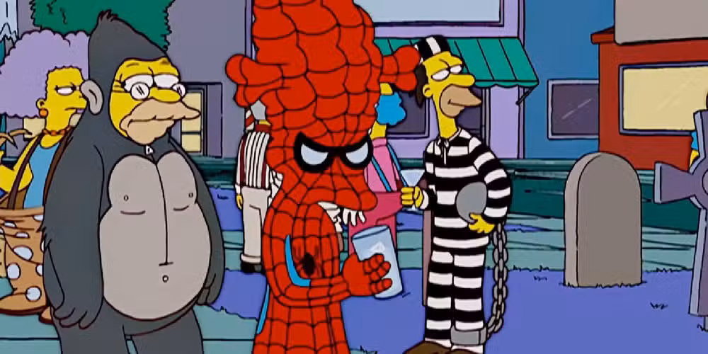 Los Simpson ha parodiado a todos los superhéroes importantes imaginables, pero el momento más extraño de Spider-Man llega en “Treehouse of Horror XVI”. Cuando una bruja convierte a los residentes de Springfield en sus disfraces de Halloween, Sideshow Mel (vestido con ropa de Spider-Man) se transforma en una versión completa de Spidey de sí mismo. El visual es extraño: La icónica silueta de pelo de hueso de Mel distorsiona el traje de Spider-Man.