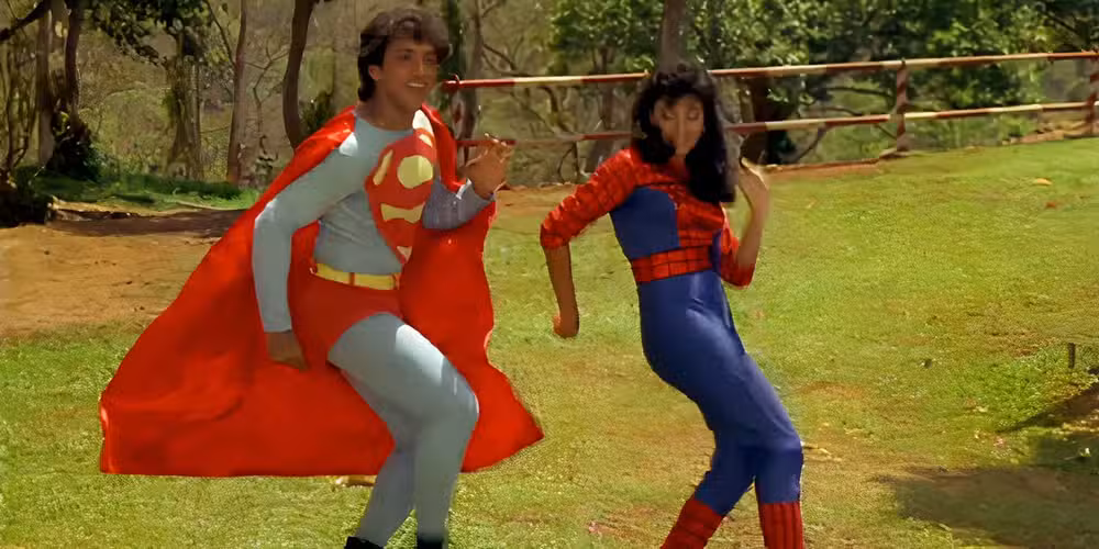 El cine indio es conocido por mezclar géneros, pero Daria Corazon ofrece uno de los crossovers más extraños jamás filmados. En un número musical, versiones disfrazadas de Spider-Woman y Superman bailan juntos en una rutina enérgica y exagerada Eso no tiene absolutamente nada que ver con la narración de superhéroes. Los personajes existen puramente como trucos estéticos.