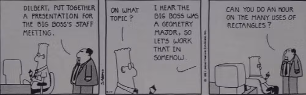 “Una hora sobre los múltiples usos de los rectángulos”: Dilbert se toma con calma la pérdida de tiempo