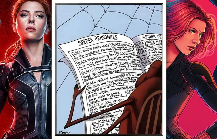 La viuda negra de Marvel lleva el nombre del mortal arácnido que famosa (a veces) canibalizan a sus compañeros. Larson juega con este hecho, ya que la sección personal de un periódico de araña está formada por completo de las arañas de las viudas negras que han consumido a sus compañeros y ahora necesitan nuevos socios. Larson es un gran admirador del mundo de los insectos, y Lado lejano Tiene muchos cómics de araña.