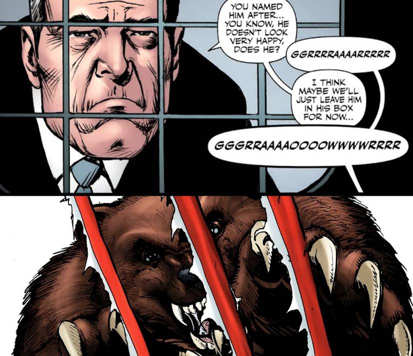 Al igual que la viuda negra de Natasha Romanoff, Wolverine de Marvel lleva el nombre de sus similitudes con el feroz carnívoro. Los cómics de Larson dependen de la extraña elección para que cualquiera mantenga un recinto fácilmente abierto de Wolverines en su hogar, y mucho menos para organizar una fiesta donde cualquiera pueda acceder a ella. Curiosamente, el cómic de Larson es similar a un momento crucial en la parodia de superhéroes Los chicosdonde el presidente Robert Shaefer es asesinado por un Wolverine literal después de invitar a un grupo de niños con mascotas inusuales a la Casa Blanca.
