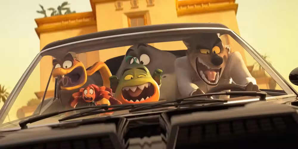 La tripulación roba un coche en The Bad Guys 2 (2025)