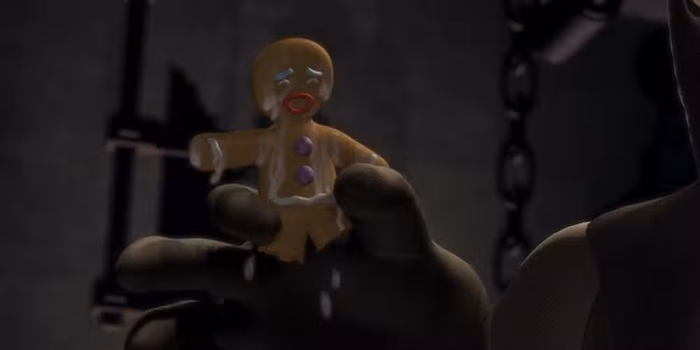 Faarquad tortura al hombre de jengibre en Shrek (2001)