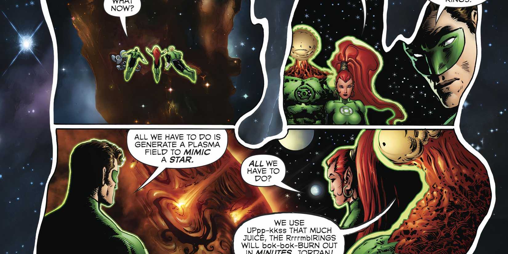 Cuando se trata de soluciones creativas, nunca dejes que Hal no pueda pensar en nada. El Cuerpo de Lintería Verde una vez enfrentó la posibilidad de un comedor solar embarazada, poniendo en peligro innumerables cantidades de estrellas. Para comprarles tiempo, Hal lidera a su equipo en la creación de una estrella de señuelo para saciar el comedor del sol recién nacido.