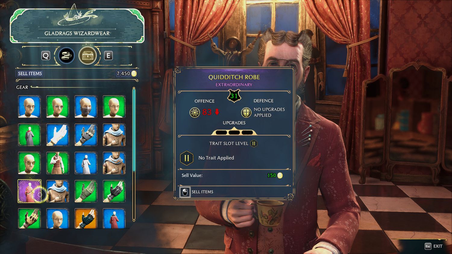 Cambiar artículos viejos por dinero también limpia el espacio del inventario para el nuevo equipo que recolectarás. No te preocupes por perder la apariencia de prendas viejas ya que Legado de Hogwarts tiene un sistema de transfiguración único que te permite cambiar la apariencia de los elementos. Una vez que obtienes una pieza de equipo para tu personaje, su apariencia se mantiene para siempre como algo que puedes cambiar, incluso si se vende más tarde a un vendedor.