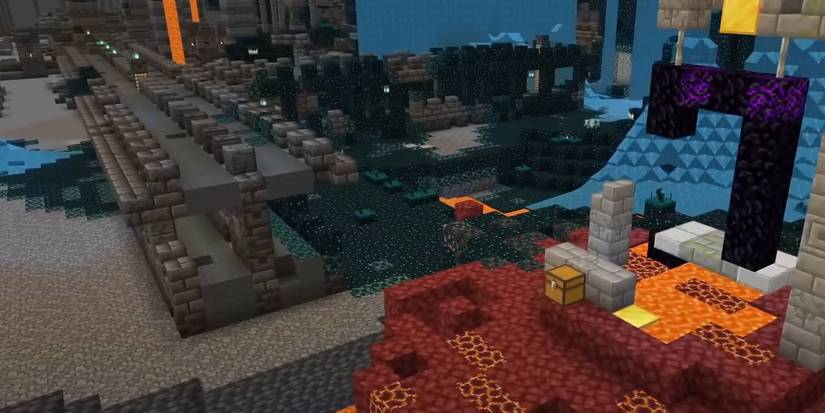 Un portal abisal en ruinas está alojado en parte de Woodland Mansion en esta semilla, lo que te brinda un camino hacia una tercera área de desafío para explorar si terminas todo lo que hay que hacer en la Mansión y la Cámara de Prueba.
