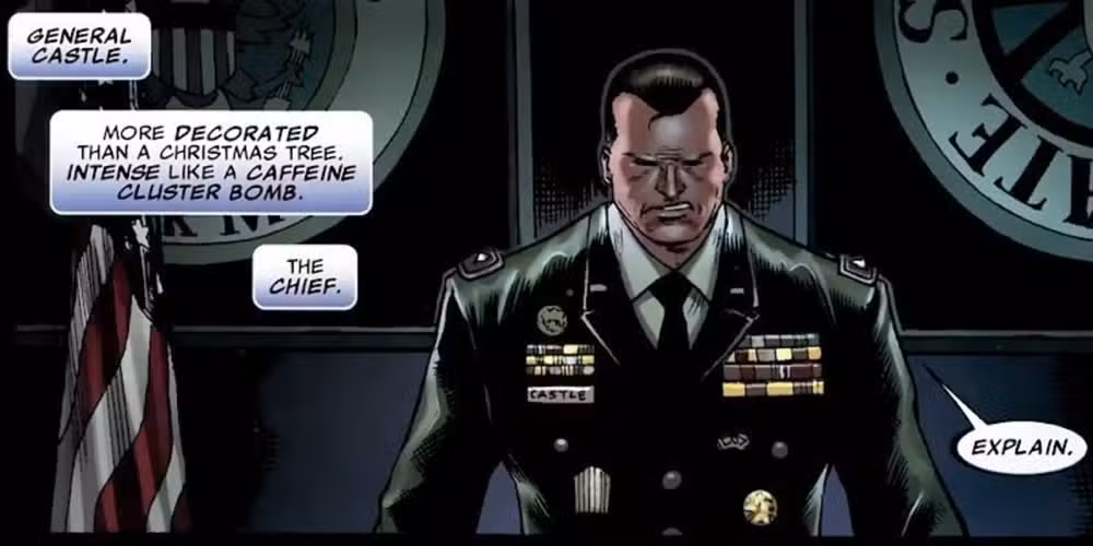 Punisher es un ex oficial militar y las habilidades que adquirió en la Infantería de Marina le han resultado muy útiles durante su guerra contra el crimen. Sin embargo, en el mundo de Edad de Xsu experiencia militar está deformada, presionado para cometer crímenes de odio contra mutantes. La mayoría de las encarnaciones de Punisher se ensucian las manos, lo que convierte al General Castle en un caso atípico.