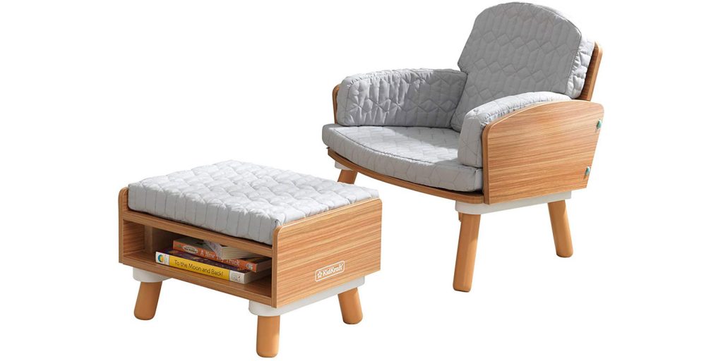 1. Silla de lectura y otomana tapizada KidKraft Mid-Century para niños con espacio de almacenamiento