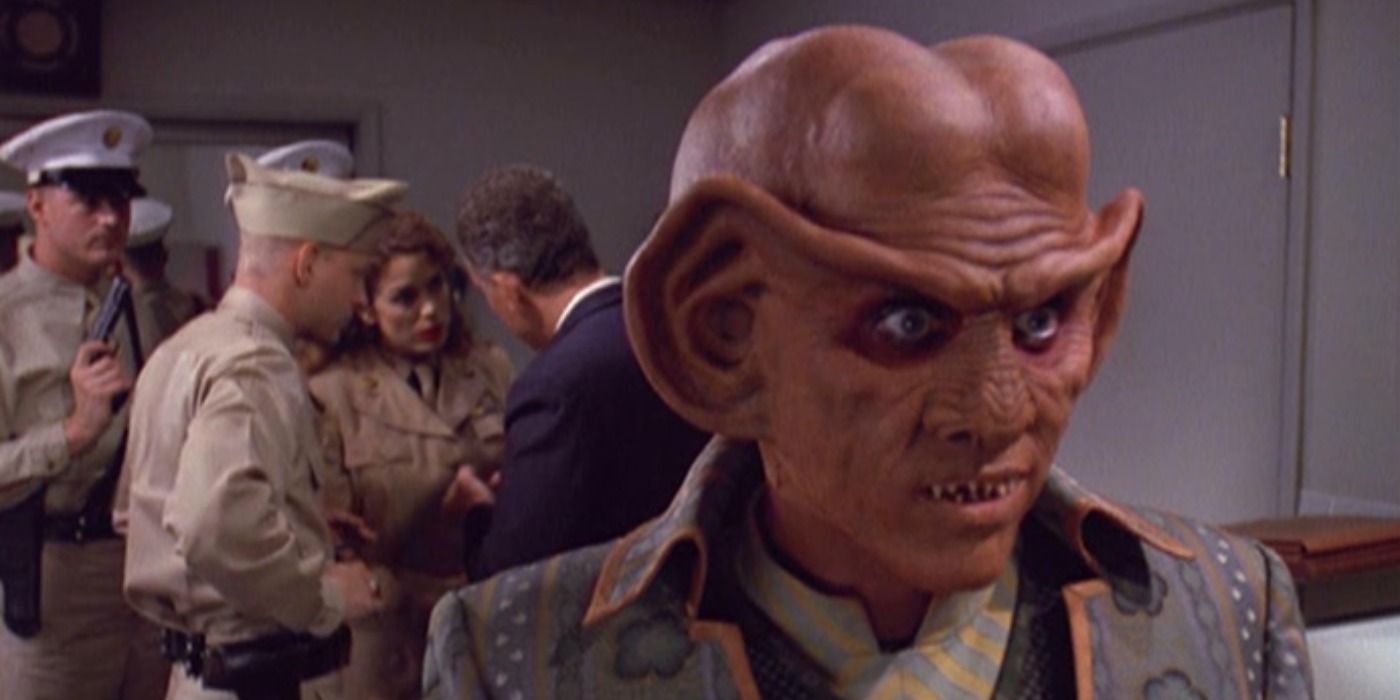 “/> Star Trek: Espacio profundo nuevetemporada 4, episodio 8, “Hombrecitos Verdes” comenzó como un episodio muy diferente de Star Trek: la próxima generación. En la propuesta original de Jack Trevino y Toni Marberry, el Capitán Picard y el USS Enterprise persiguieron una nave ferengi a través de una anomalía temporal. Cuando el Ferengi se estrelló en Roswell, Nuevo México, le correspondió al GNV tripulación para preservar la historia limpiando el desorden. El GNV La sala de escritores había alcanzado su cuota asignada de episodios de viajes en el tiempo y la rechazó, pero la historia del primer contacto de la Tierra con los ferengi se convirtió más tarde en una de DS9Los mejores episodios de comedia.