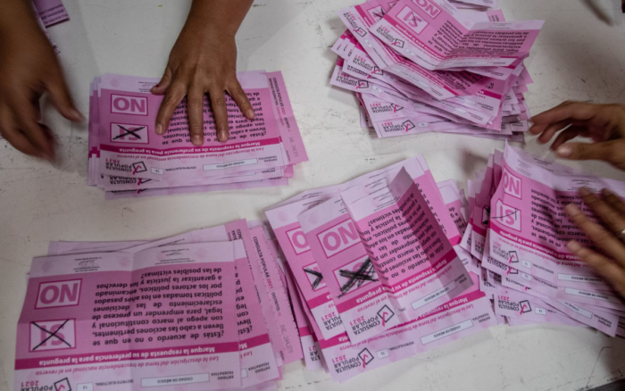 El funcionario indicó que con el 100% de las actas computadas, se registraron 806 mil 693 participantes, de los cuales, el 97.62% votó por el “Sí”; el 1.82% votó por el “No”. En tanto, el 0.54% anuló su voto.