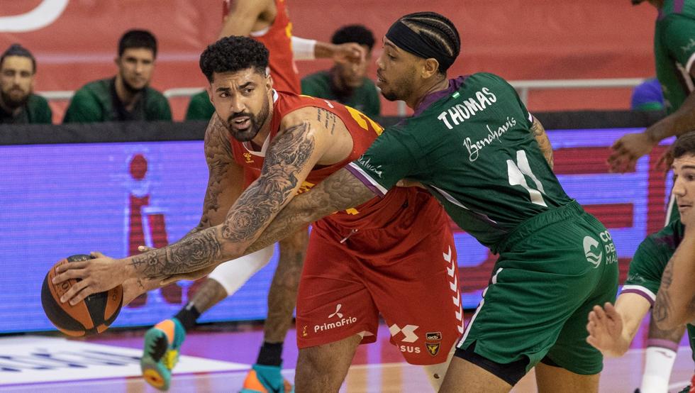 El Unicaja, sin hacer daño con su juego interior -sólo tres puntos de Rubén Guerrero y uno de Malcolm Thomas en cuanto a los pívots en la primera parte-, estaba a merced de un rival más intenso y eso se reflejaba en el hecho de que los de casa hubiesen colocado cuatro tapones por ninguno de los visitantes y en el del claro dominio del rebote -26 capturas frente a 14-.