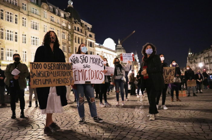 Portugal, Porto. Asistentes a a marcha exigen justicia por los feminicidios registrados en el país europeo.