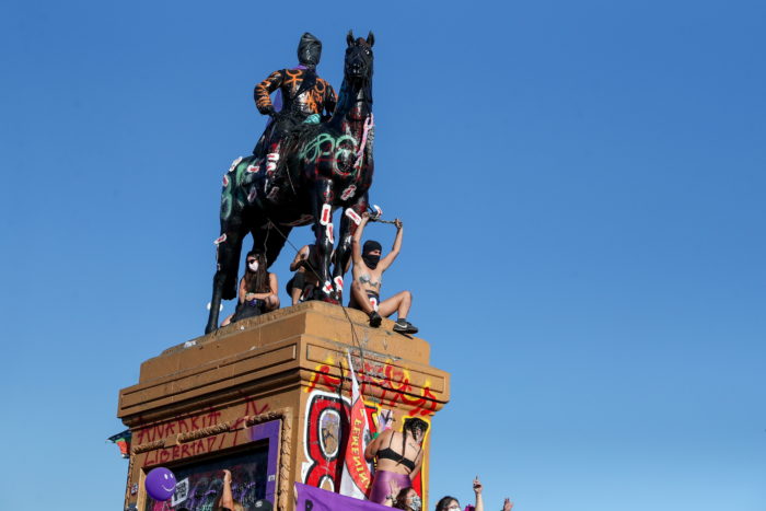 Chile, Santiago. Manifestantes realizan pintas a monumentos históricos en el país sudamericano.