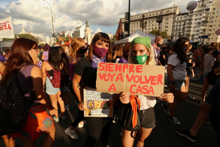 Argentina, Buenos Aires. Asistentes a la marcha por el 8M en la capital argentina.