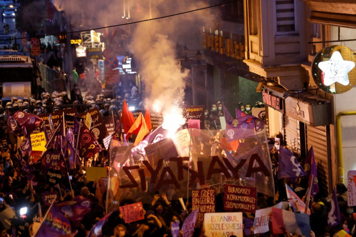 Turquía, Estambul. Turcas asisten a la marcha por el Día Internacional de la Mujer.