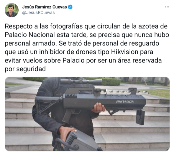 “Se trató de personal de resguardo que usó un inhibidor de drones tipo Hikvision para evitar vuelos sobre Palacio por ser un área reservada por seguridad”.