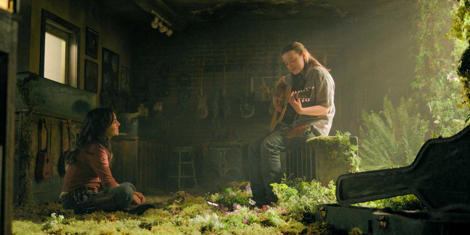 Ellie tocando la guitarra es una escena divertida en ambos de HBO El último de nosotros y La última parte de nosotros Parte IIaunque se desarrolla de manera diferente en ambas versiones. En la temporada 2, Episodio 4, Ellie y Dina exploran una tienda de música al principio del episodio, con Ellie encontrando la guitarra allí. En La última parte de nosotros Parte IILa escena de la guitarra de Ellie tiene lugar en el teatro, después de que ella se entera del embarazo de Dina. Además, Ellie canta “Future Days” de Pearl Jam en el juego. En el programa, Ellie canta “Take on Me” de A-Ha, muy probablemente porque el brote de HBO Show tuvo lugar en 2003, 10 años antes de que se lanzara “Future Days”.