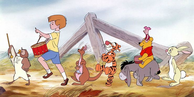 “El pequeño cubículo gordito lleno de pelusa” es solo una de las letras que capturan perfectamente el carácter de Pooh. Combine esto con la alegre melodía mientras literalmente camina sobre las palabras de la página y es prácticamente la forma ideal para que Pooh ingrese a la película.