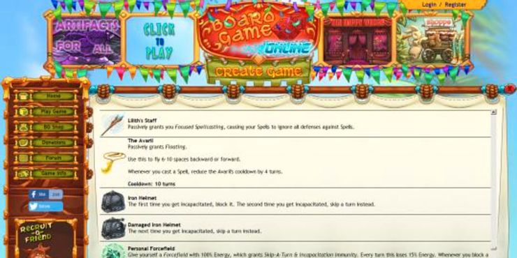 Otro juego gratuito en el navegador es Juego de mesa en líneaY, aunque tampoco requiere una computadora fuerte, el juego es todo menos simple. Incluso la sección de preguntas frecuentes del sitio web dice que el juego “desafía toda lógica”. Sin embargo, esto no significa que el juego sea difícil de jugar. El objetivo es el mismo que en la mayoría de los juegos de mesa, que es llegar al final primero tirando los dados y yendo hacia atrás o hacia adelante según los espacios en los que caen los jugadores y las cosas que hacen.