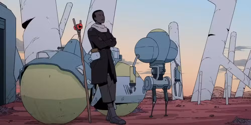 ¿Qué hace? Reinado de los carroñeros Una visita obligada es su animación y sus elementos de ciencia ficción.. En pocas palabras, Reinado de los carroñeros es una obra maestra visual. Hay pocos otros programas animados similares, y cada escena parece una obra de arte independiente. Para mejorar aún más las cosas, la ciencia de Reinado de los carroñeros es innovador e imaginativo a una escala con la que pocos otros programas de ciencia ficción ni siquiera sueñan.