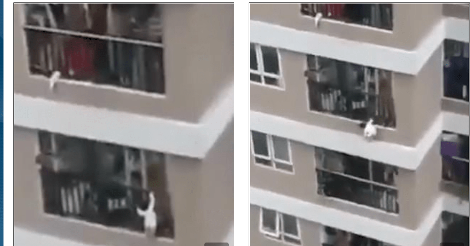 Según el informe del periódico, Nguyen Ngoc Manh, de 31 años, estaba en su camioneta esperando para entregar un paquete en el área de Hanoi del país cuando vio al niño pequeño colgado del piso 12 del apartamento aferrado al borde con una mano.