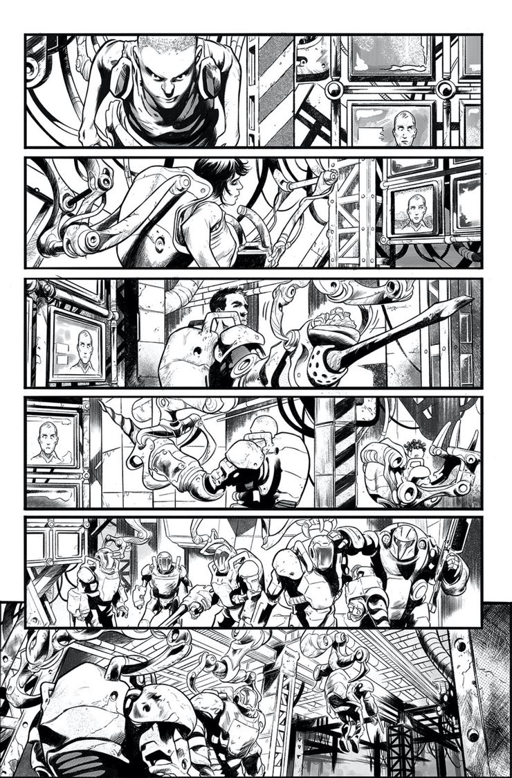 Valiant ha ofrecido a los fanáticos detalles tentadores sobre el título, así como un vistazo a las páginas de vista previa, que se comparten a continuación. Anunciada como una “serie de gran éxito sobre los campeones cotidianos” Blindados está ambientado en un sistema solar alienígena, donde personas genéticamente diseñadas, llamadas Xeru, trabajan en minas opresivas, extrayendo un mineral llamado Pure. Estos Xeru usan trajes mecánicos gigantes, los Armorclads del título, para extraer la sustancia, así como para luchar en batallas. La serie comienza cuando uno de los Armorclads muere, lo que hace que se rebelen contra sus amos. El comunicado de prensa insinúa misterios más grandes, incluido uno que podría sacudir al Universo Valiente hasta su núcleo. Las páginas de vista previa ofrecen a los fanáticos un vistazo de los Armorclads en acción, ya que brindan escolta para la carga, así como un vistazo a su sede.