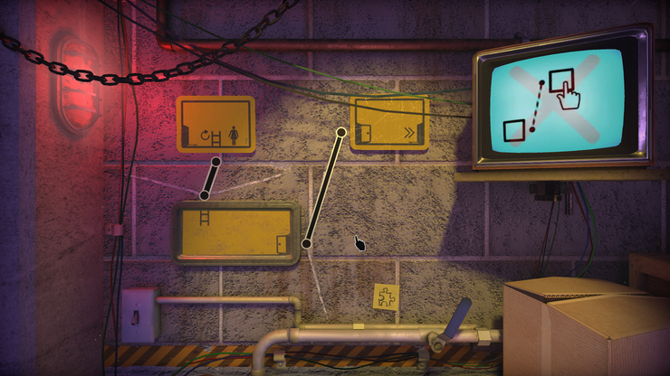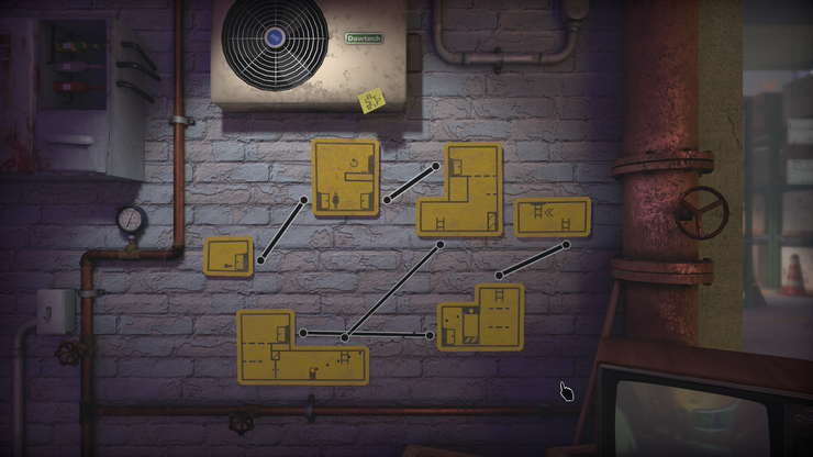 El peatónEl primer rompecabezas de Warehouse tiene otro televisor, esta vez mostrando a los jugadores cómo mover paneles. Para conectar sus puertas, mueva el panel más grande a la derecha de los otros dos y conecte las puertas como en la foto de arriba. Tenga en cuenta que si las habitaciones están demasiado cerca o la conexión entre las puertas es demasiado pronunciada, el peatón no puede atravesarlas.