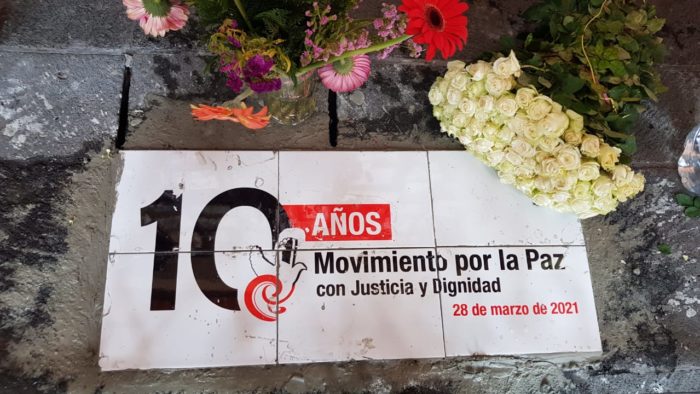 Lo anterior, durante un acto conmemorativo frente al Memorial de Víctimas, colocado desde marzo del 2012 en la entrada principal del Palacio de Gobierno, tras el multihomicidio en el que una de las víctimas fue su hijo Juan Francisco Sicilia.
