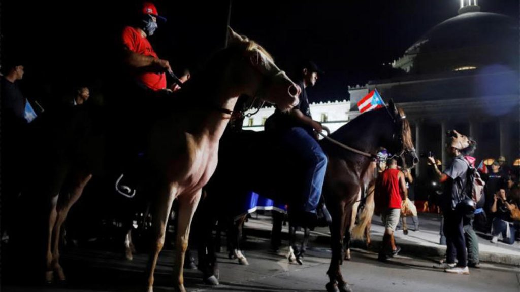 Hasta el Capitolio, la sede del Legislativo, a la entrada del Viejo San Juan, también llegaron manifestantes a caballo, decenas de ellos, que dieron la nota de color a esta jornada de protesta.