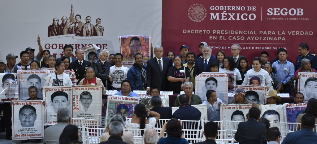 Desde el arranque del actual gobierno, mediante un decreto presidencial firmado el 3 de diciembre del 2018 en un acto en Palacio Nacional junto con padres y madres de los 43, se creó la Comisión de la Verdad y la Justicia para el Caso Ayotzinapa, encargada de esclarecer la desaparición de los estudiantes.