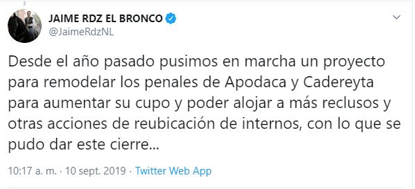 Los presos han sido reubicados a penales como los de Apodaca y Cadereyta, los cuales fueron remodelados “para aumentar su cupo y poder alojar a más reclusos”, señaló Rodríguez Calderón.
