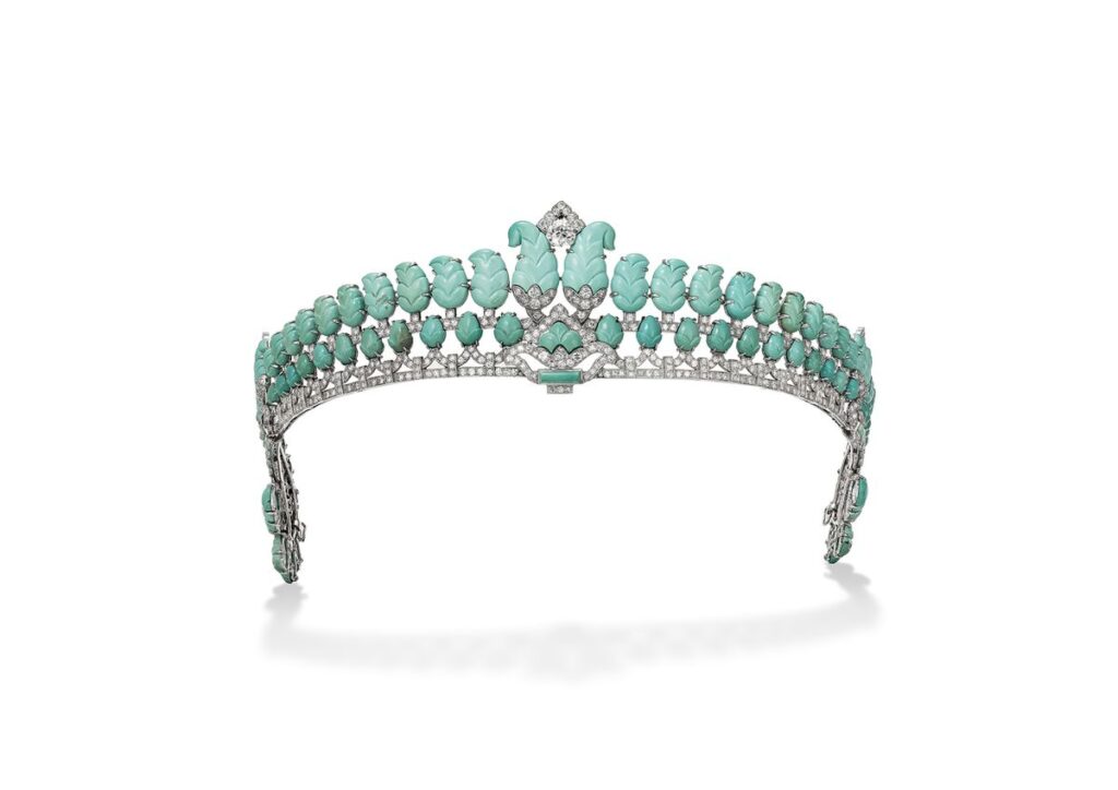Cartier no fue la única casa joyera ni de moda que abrazó este ascendente —Poiret o Chopard también lo hicieron—, pero sí la que lo integró de una forma más relevante. Hénon es categórica: “La influencia islámica fue lo que permitió a la firma entrar en la modernidad”. La marca pasó de su famoso estilo guirnalda —profuso en lazos y formas redondeadas propias del romanticismo renacentista— a diseñar piezas inspiradas en los dibujos geométricos del arte islámico. La línea recta empezó a dominar su catálogo, y elementos como las decoraciones de ladrillo esmaltado de Asia Central o los merlones escalonados forman la base de un repertorio precursor del Art Decò. También pueden identificarse elementos arquitectónicos, como los triángulos de la fachada del palacio de Mshatta, erigido en Jordania en torno al año 143, en una tiara de principios del siglo XX. “Todo esto situaría a Cartier en un mundo muy moderno muy temprano”, completa Possémé.