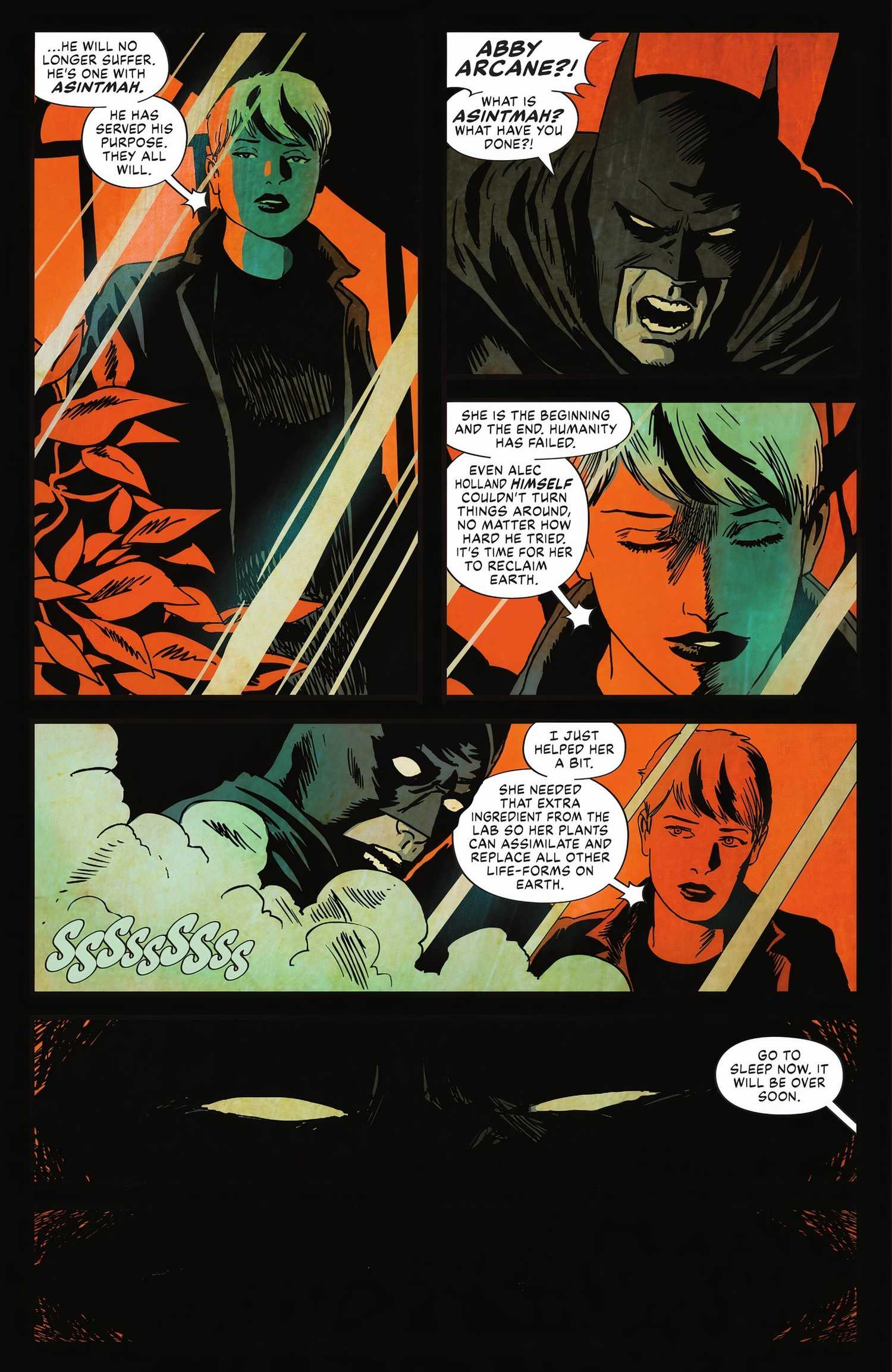 En el cuento “El amanecer cthoniano”, escrito y dibujado por Francesco Francavilla y que aparece en Regalos de terror de DC #3, Batman está investigando un robo y asesinatos en un laboratorio de investigación. Los científicos del laboratorio buscaban formas de acelerar el crecimiento de las plantas. El rastro lleva a Batman hasta Abigail Arcane, la ex esposa de Swamp Thing Alec Holland. Abigail le dice a Batman que ahora está sirviendo a un nuevo dios, llamado “Asintman”, que busca asimilar toda la vida en él.
