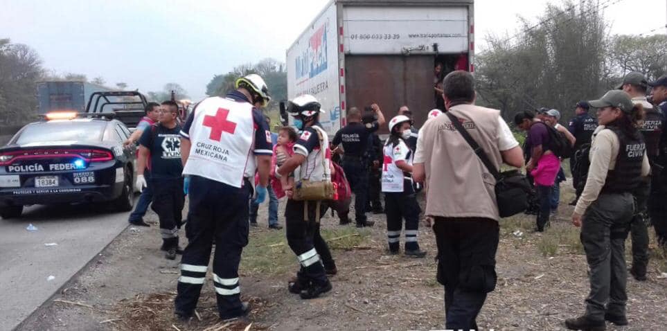 Los migrantes fueron resguardados por la Policía Estatal y atendidos médicamente, por diversas instituciones de auxilio; asimismo, se reporta que 60 personas presentaron deshidratación.