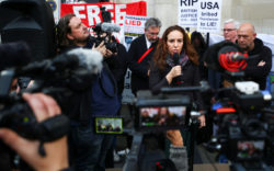 Simpatizantes de Assange se concentraron frente al edificio del tribunal desde primera hora de este miércoles, coreando: “liberen a Julian Assange”, antes de que llegaran su padre y Stella Moris, su pareja y madre de sus dos hijos.