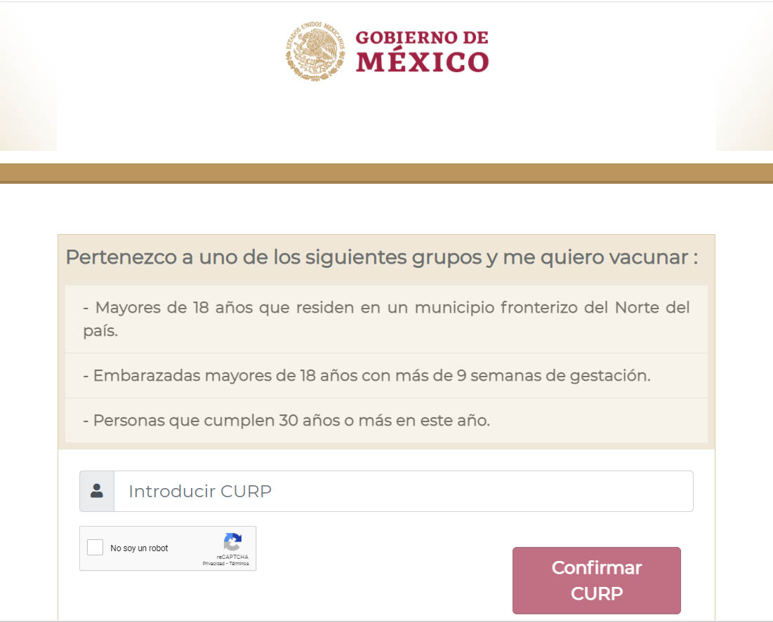 Para realizar el registro, deberán ingresar la Clave Única de Registro de Población (CURP) las personas que cumplan 30 años o más en este año. También podrán hacerlo aquellas personas mayores de 18 años que residan en un municipio fronterizo del Norte del país, así como embarazadas mayores de 18 años con más de 9 semanas de gestación.