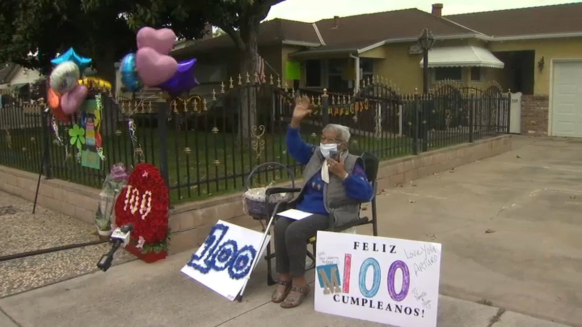 A bordo de patrullas, motos y un camión de bomberos, oficiales desfilaron frente a la casa de la querida “Tía Mary” para felicitarla por su cumpleaños número 100 en San José, California.