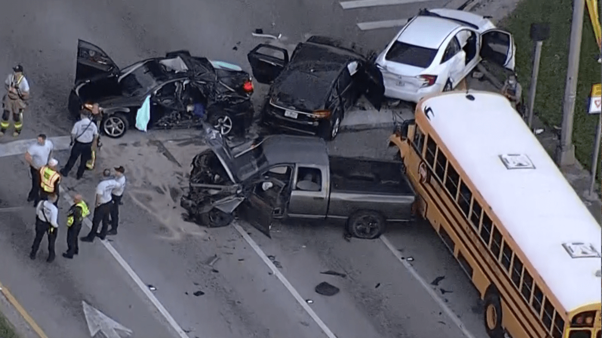 MIAMI, Florida – Un peatón murió y varios más resultaron heridos, después de un accidente entre cuatro vehículos y un autobús escolar este martes en Hialeah Gardens.