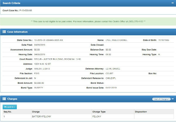 Sin embargo, el expediente disponible en el sitio web del Sistema de Justicia Criminal del Condado de Miami-Dade no ha sido actualizado, pues refiere que Pablo Lyle enfrenta un cargo de agresión, delito por el cual podría enfrentar una pena de hasta cinco años de cárcel. Con la muerte de Hernández y el cambio en la investigación, Lyle podría enfrentar hasta 15 años de prisión por homicidio involuntario.
