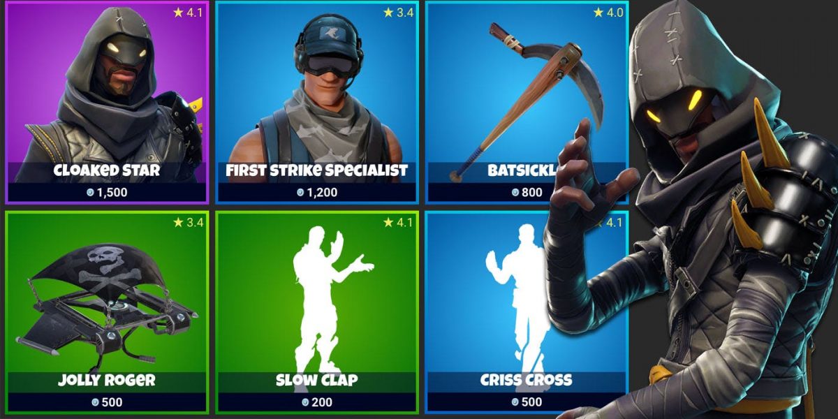 Los trajes de The Cloaked Star y First Strike Specialist también realizan su devolución bajo el letrero de Artículos Diarios. Junto a ellos se encuentran las herramientas de recolección de batatas, el planeador Jolly Roger, y los emotes de Slow Clap y Criss Cross para que los fanáticos los compren y los saquen durante la batalla. Sin embargo, todos están aquí solo durante 24 horas, por lo que los jugadores deben actuar rápido si desean agregarlos a su biblioteca de cosméticos.