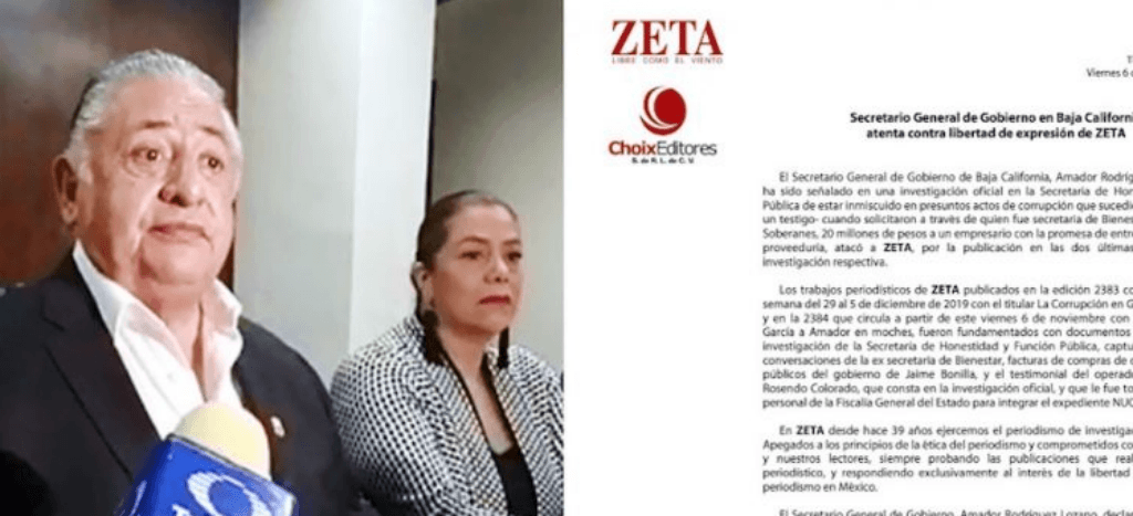El semanario Zeta denunció que el secretario general del Gobierno de Baja California, Amador Rodríguez Lozano, atenta contra la libertad de expresión y el trabajo periodístico que realiza ese periódico en Baja California.