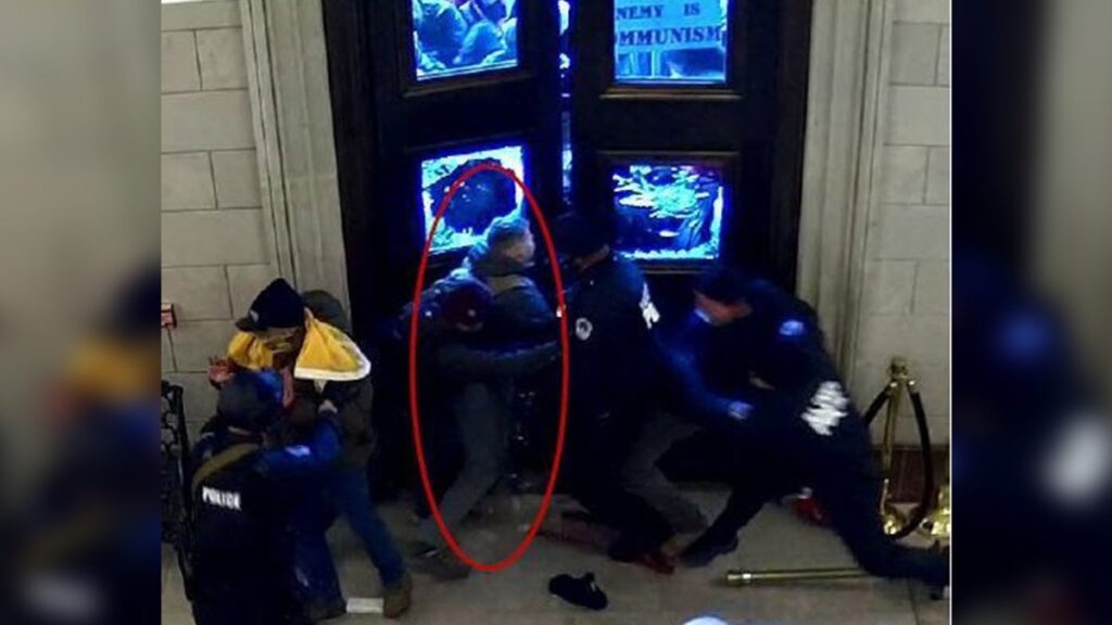 Cuando un oficial de la Policía del Capitolio intentó cerrar las puertas, Warnagiris se opuso y la empujó para despejar el ingreso.