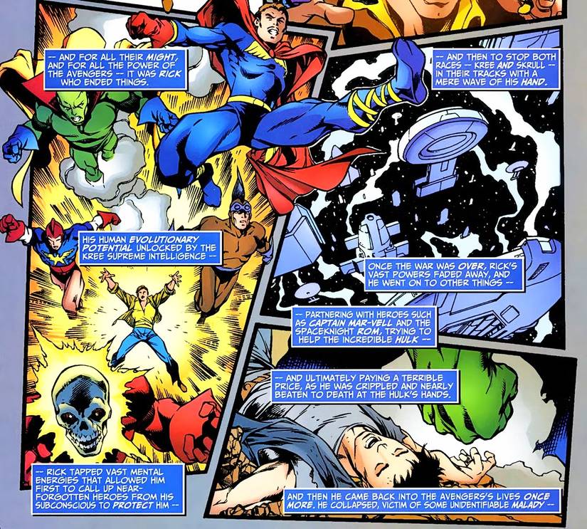 Como era de esperar, Rick no parece muy interesado en mantener su identidad en secreto, o al menos no es muy bueno en eso. Muy estrechamente alineado con un personaje como She-Hulk, Rick es consciente de su estatus en el cómic y le encanta. Le encanta Marvel Comics, tanto en su universo como en el “mundo real”. Ha aplastado a los villanos como Hulk, ha atravesado las estrellas como un héroe cósmico, él solo puso fin a la guerra Kree-Skrull con su imaginación y ahora, dada una oportunidad de oro para aprovechar sus poderes dorados, Rick puede ayudar a Venom mientras el simbionte está necesitado.