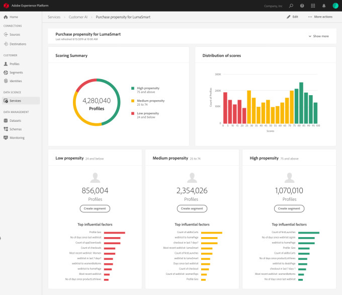 Esos datos provienen de Adobe Experience Platform, que está diseñada para extraer datos no solo de los productos de Adobe, sino también de una variedad de fuentes empresariales para ayudar a los especialistas en marketing a crear una imagen más completa de sus clientes y obtener respuestas a preguntas clave.