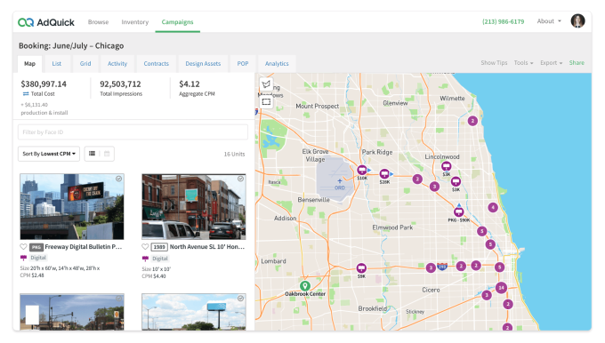 AdQuick no está en el negocio de alquilar espacios publicitarios de su propiedad. Al igual que los canales tradicionales, conectan al propietario del espacio publicitario con un comprador y cobran una comisión por la compra. A diferencia de otros canales, han intentado inyectar el análisis de anuncios de la web en el proceso para que los compradores entiendan lo que están pagando por las impresiones y puedan dirigir las marcas a ubicaciones de mayor ROI donde podrían no haber estado buscando.