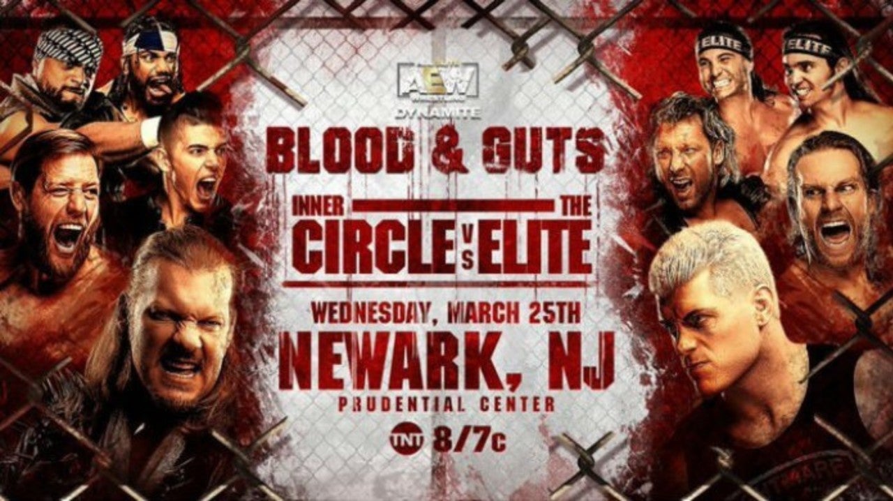 All Elite Wrestling anunció a principios de marzo que la promoción tendría su primer combate “Blood & Guts”, la versión de la compañía del clásico combate WarGames de WCW que se burla de una cita de Vince McMahon sobre la joven compañía, en el episodio del 25 de marzo de AEW Dynamite. Ese partido, originalmente programado para presentar a los cinco miembros de The Elite vs.The Inner Circle, se canceló rápidamente una vez que la pandemia de COVID-19 eliminó la posibilidad de eventos en vivo. AEW finalmente tuvo su choque entre las dos facciones en el partido cinematográfico Stadium Stampede unt Doble o nada, que culminó con la victoria de The Elite.