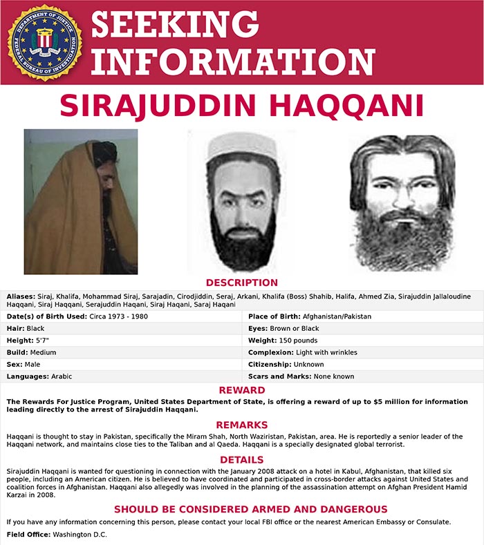 Uno de los nombres que más polémica ha generado por su incorporación al gabinete es el de Sirajuddin Haqqani, líder de la Red Haqqani y nuevo ministro de Interior. Figura en la lista negra por terrorismo de Estados Unidos y el FBI ofrece por su captura una recompensa de diez millones de dólares.