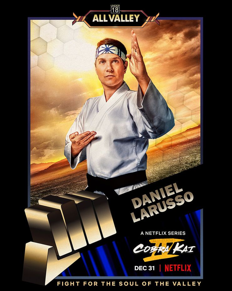 Los nuevos carteles de personajes de la temporada 4 de Cobra Kai destacan los tres dojos en competencia del programa, incluido el brillantemente llamado Eagle Fang de Johnny Lawrence.