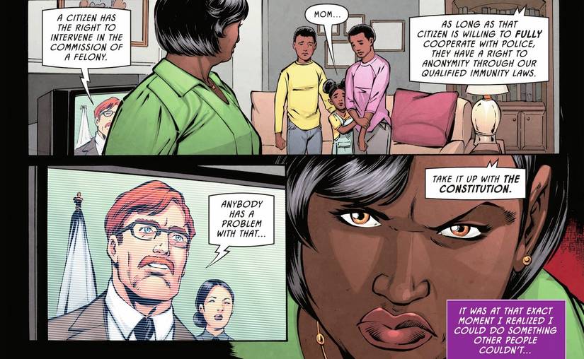 Como se revela en Poder absoluto: orígenes #1 de John Ridley y Alitha Martinez, después de que Batman ayuda a capturar a Joe Chill, James Gordon da una conferencia de prensa donde anuncia con orgullo que uno de los casos sin resolver más antiguos y peores de Gotham finalmente se ha cerrado. Durante esta conferencia de prensa, Gordon también brinda información extremadamente importante sobre cómo El vigilantismo no sólo está permitido en Ciudad Gótica, sino que parece contar con el pleno apoyo tanto de la fuerza policial como de la Constitución de los Estados Unidos.