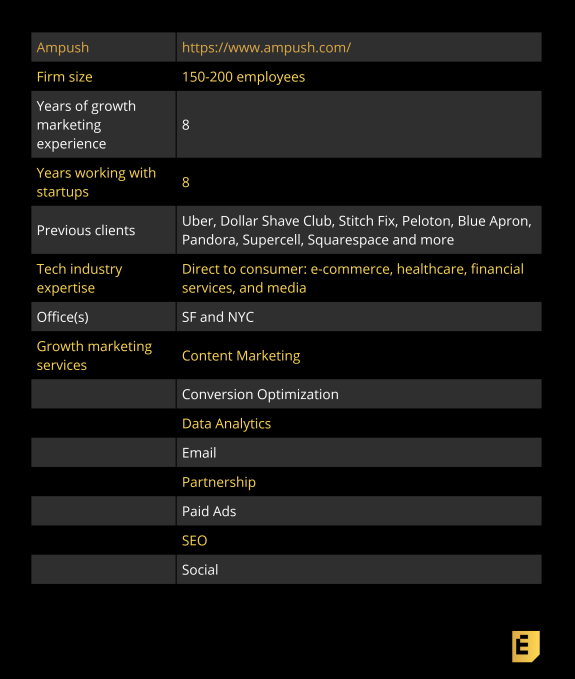 Los clientes han descrito Ampush como el “McKinsey del marketing de crecimiento”, y en muchos sentidos, es apto. Ampush tiene un enfoque de marketing de crecimiento implacablemente cuantitativo y de embudo completo, y ha creado un software exclusivo para respaldarlo. El cofundador y CEO Jesse Pujji explica por qué Ampush trabaja exclusivamente con compañías de consumo directo y por qué pasaron de servir a 100 compañías en 2015 a formar asociaciones más profundas con menos de 20 compañías en la actualidad.